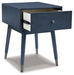 A study in seeming contradictions, this accent table is both practical and stylish. A storage drawer lets you keep necessary items in reach while out of sight, and two USB ports keep your devices powered up as you wind down. The clean lines and antiqued blue finish give this piece a high-design profile to elevate your space.