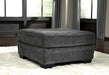The ultimate sectional centerpiece, this oversized ottoman is big on cool, contemporary style and long on comfort. Plushly upholstered in a slate gray fabric, this ottoman is so generously scaled, you can top it with a serving tray and still have plenty of room to kick up your heels.