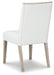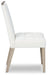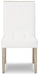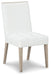 Dress your dining room in exceptional style with this dining side chair. Its light bisque wood finish and faux leather upholstery hit just the right note for a crisp, contemporary look. The chair's modern design and sleek aesthetic make for a lovely ensemble.