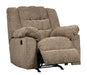 Saddle up for affordably priced luxury with this rocker recliner. Stylish elements of this contemporary recliner include biscuit back cushioning and incredibly thick and sumptuous pillow top armrests. Ultra neutral and wonderfully plush, the warm taupe upholstery is sure to complement an endless array of color schemes.